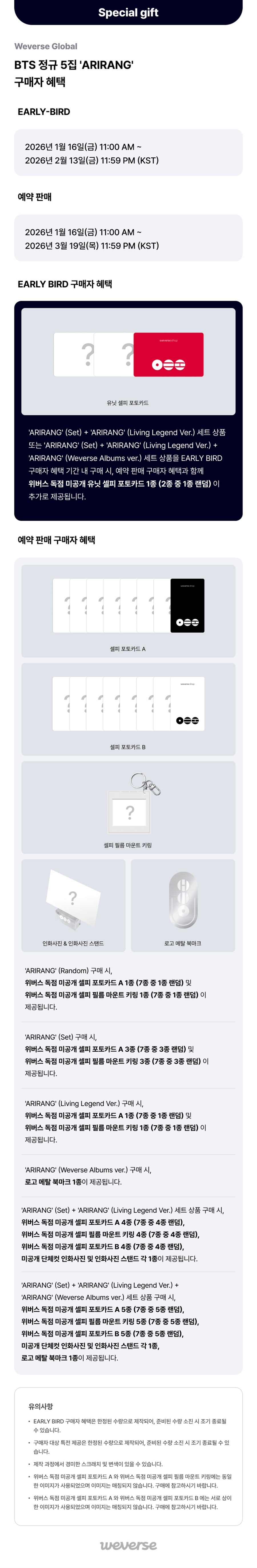 BTS - (Weverse shop POB)[EARLY-BIRD] 'ARIRANG' (2EA/Set)+(Living Legend Ver.)+(Weverse Albums ver.) Set